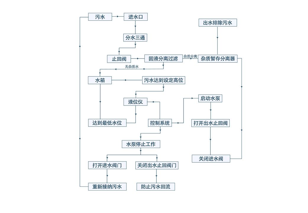 采用雜物污水分離器結(jié)構(gòu),使水泵與可纏繞型雜物不接觸,避免雜物纏繞堵塞水泵葉輪好而燒壞水泵電機(jī);具有反沖洗功能,使得設(shè)備內(nèi)不會(huì)產(chǎn)生沉淀,實(shí)現(xiàn)了無(wú)沉淀,免清掏,大大節(jié)約了設(shè)備運(yùn)行和管理維護(hù)的成本。